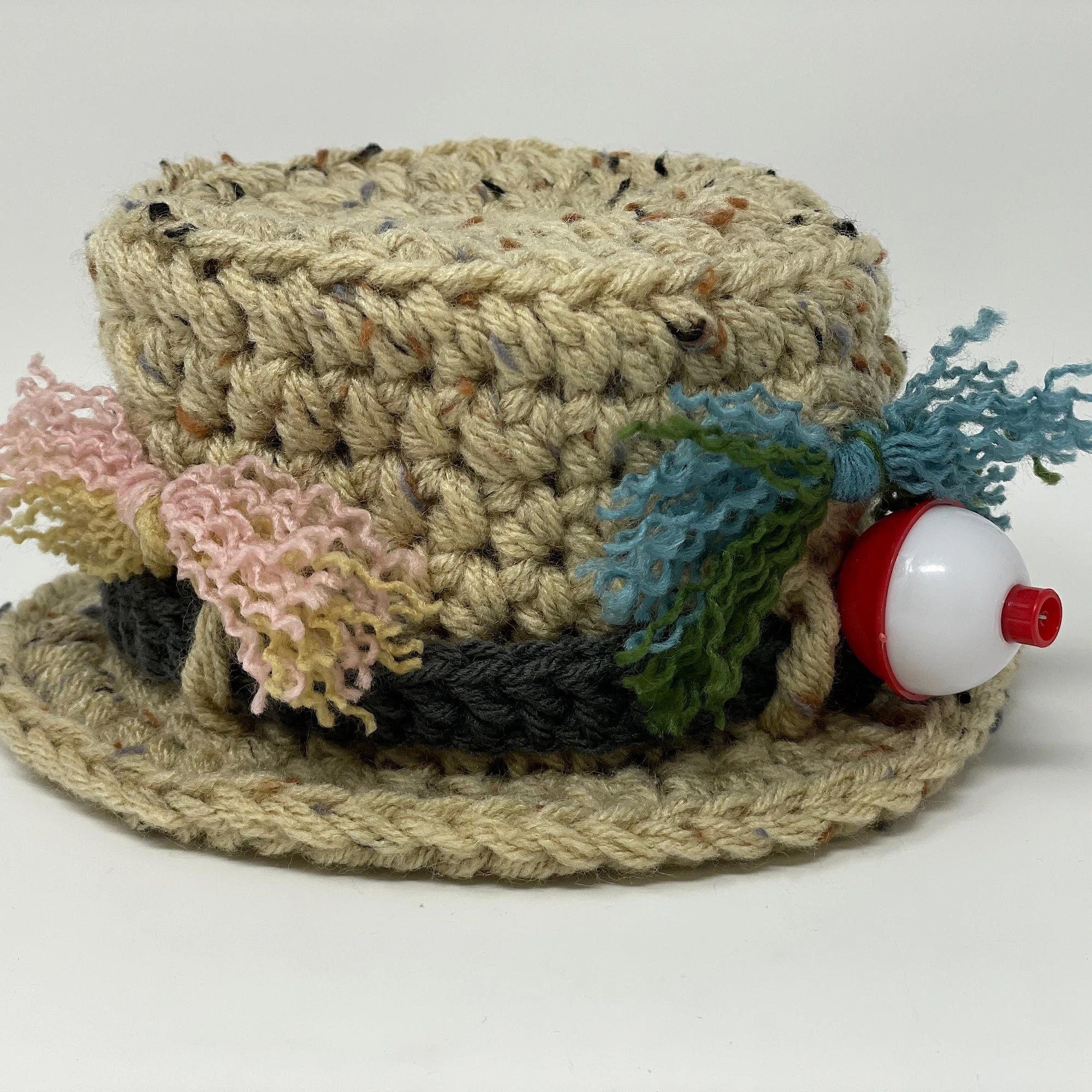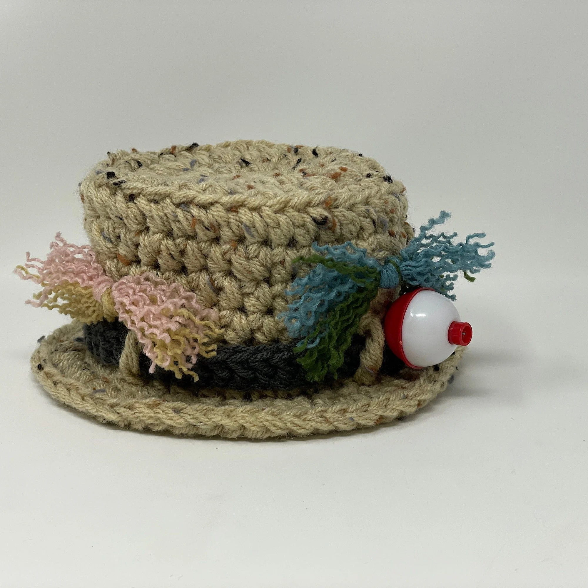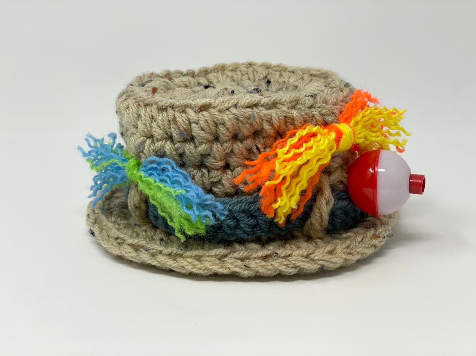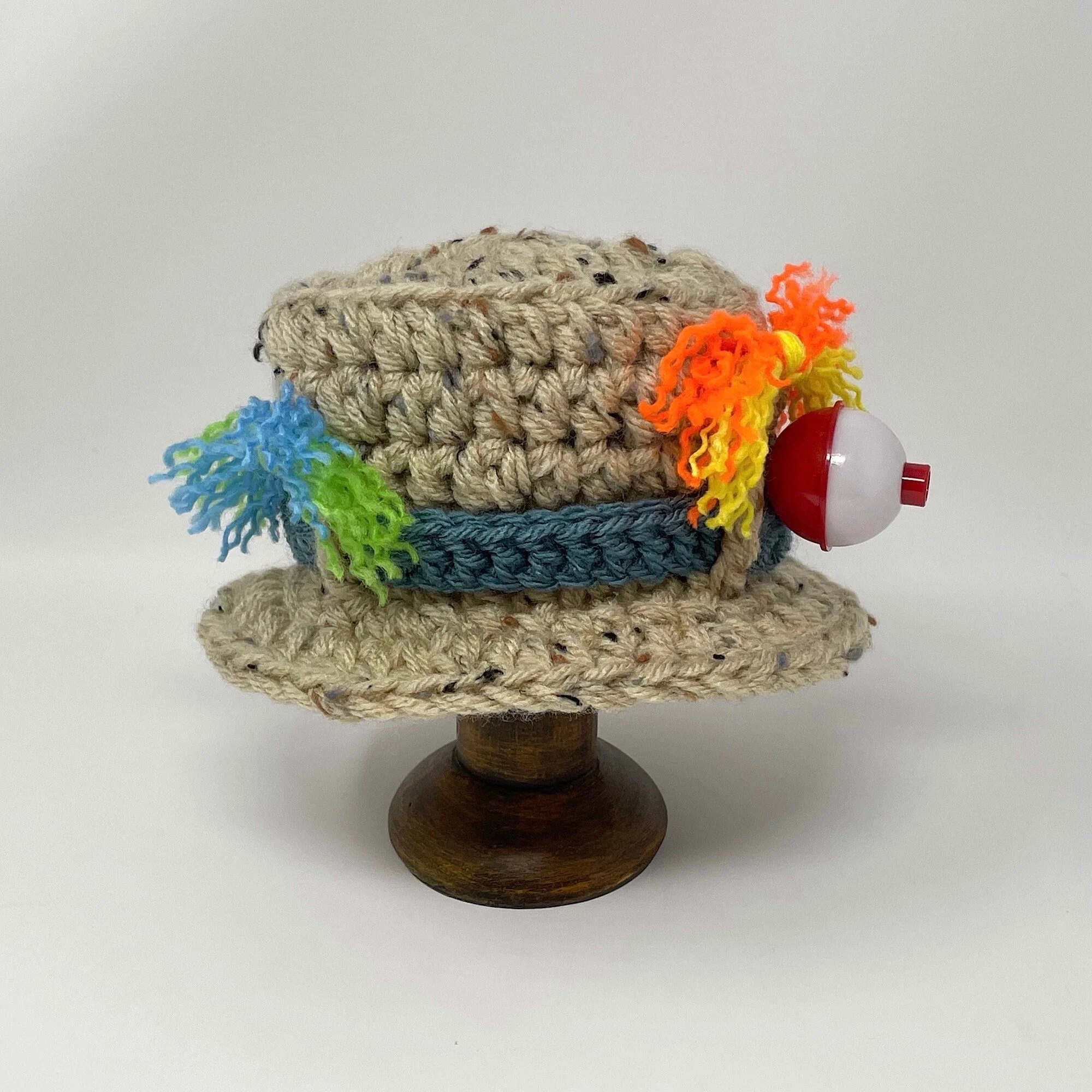 This listing is for ONE FISHING HAT. Fishing hat features "yarn lures" and fishing bobber. Bobber is removable.