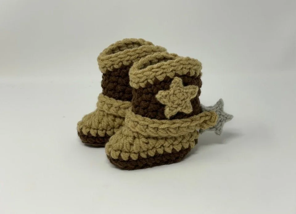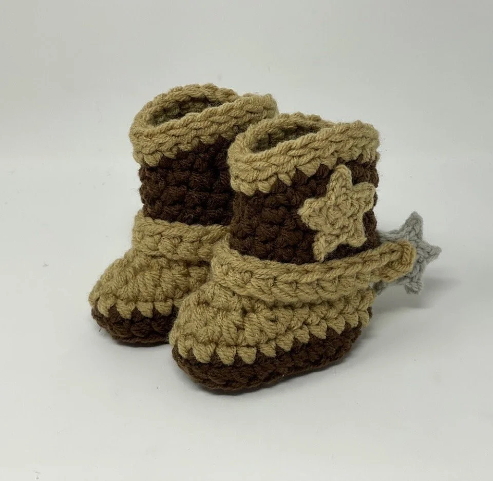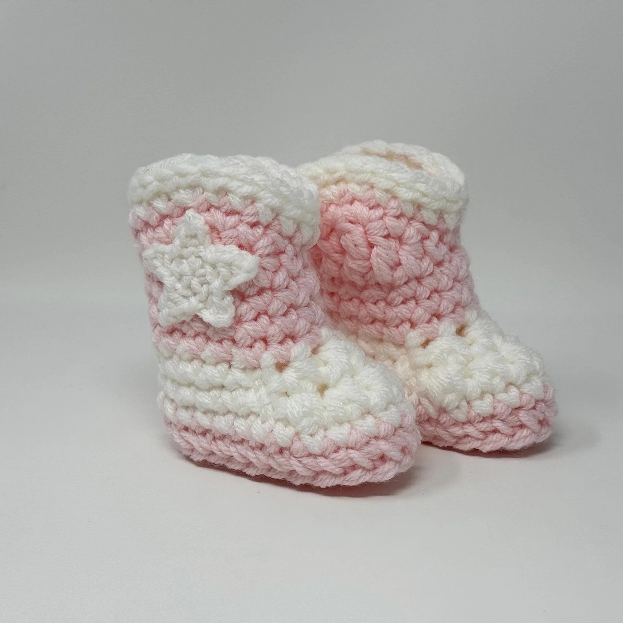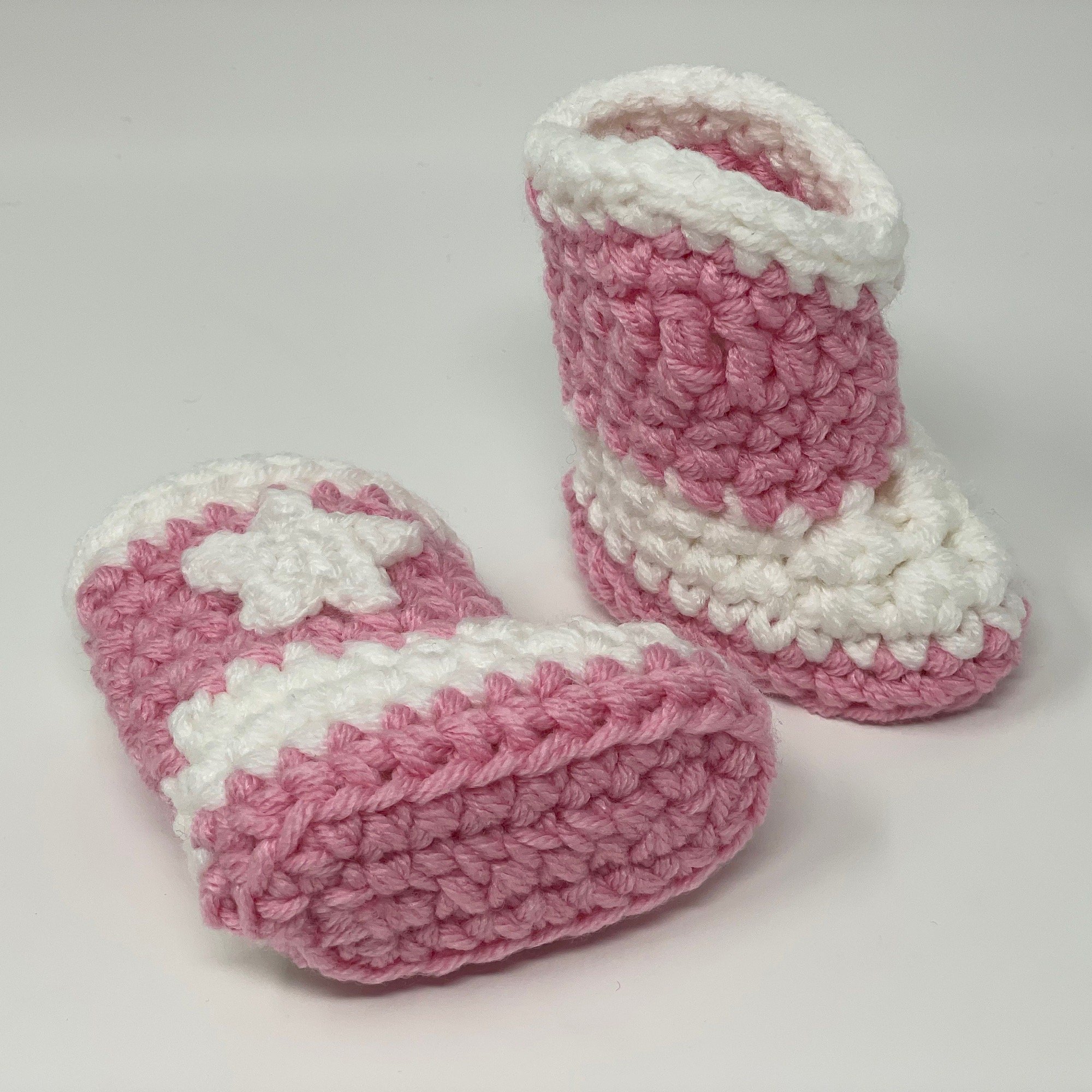These MADE TO ORDER baby cowgirl boots are made with acrylic yarn in pink and white. I can make them with or without the star on one side of each boot, just choose your option at checkout. They would make a great photography prop, cowgirl baby shower gift or gender reveal baby announcement!